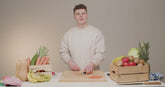Hold fruit in non-dominant hand, place thumb of dominant hand at the base of the fruit/vegetable closest to your body to help anchor the peeler and peel towards yourself. This allows for more control and protects your fingers from the peeler blade.